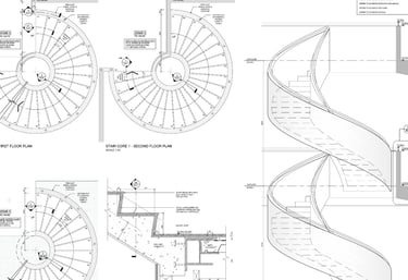 Unlike a spiral staircase, which has a central pole, a helical staircase is a "floating" curve with an open center.