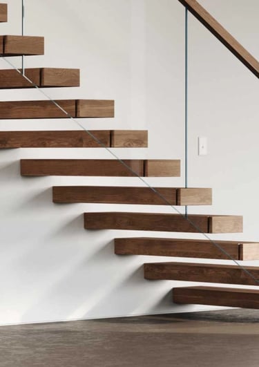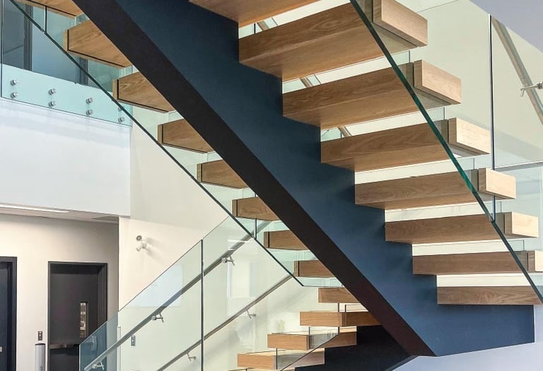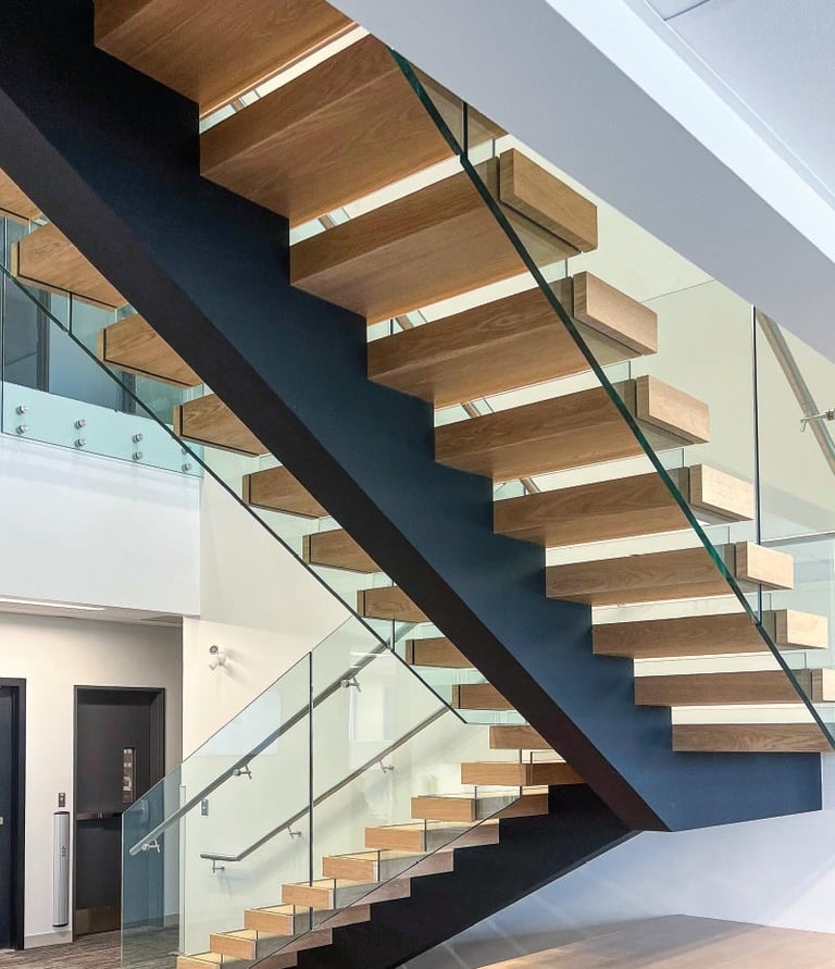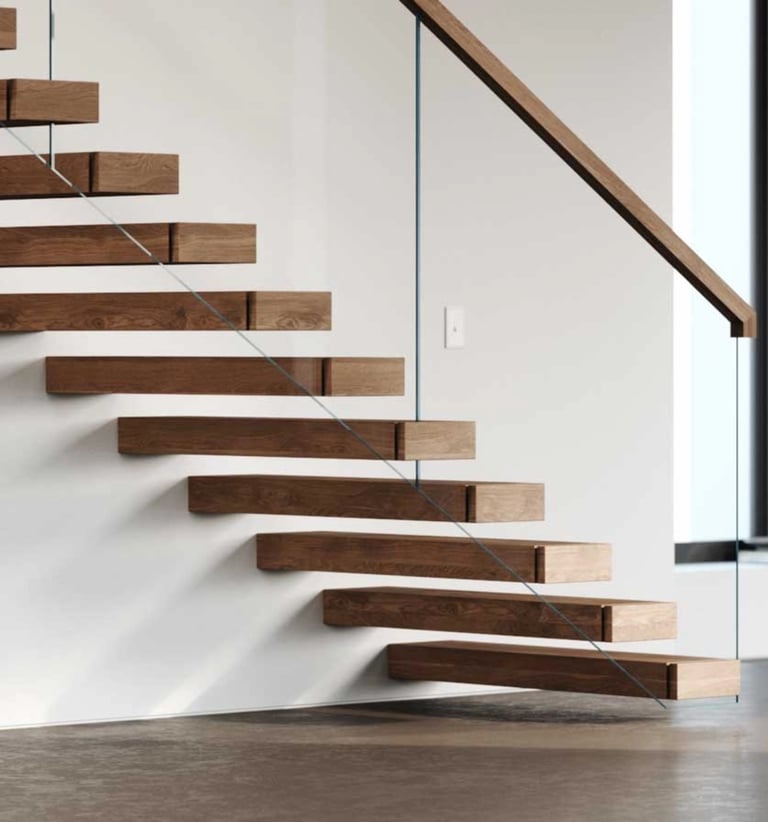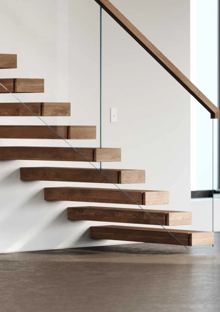 Engineering: Each tread acts as a cantilever beam. It requires a massive hidden structural frame (usually steel) or a reinforced concrete wall behind the drywall.